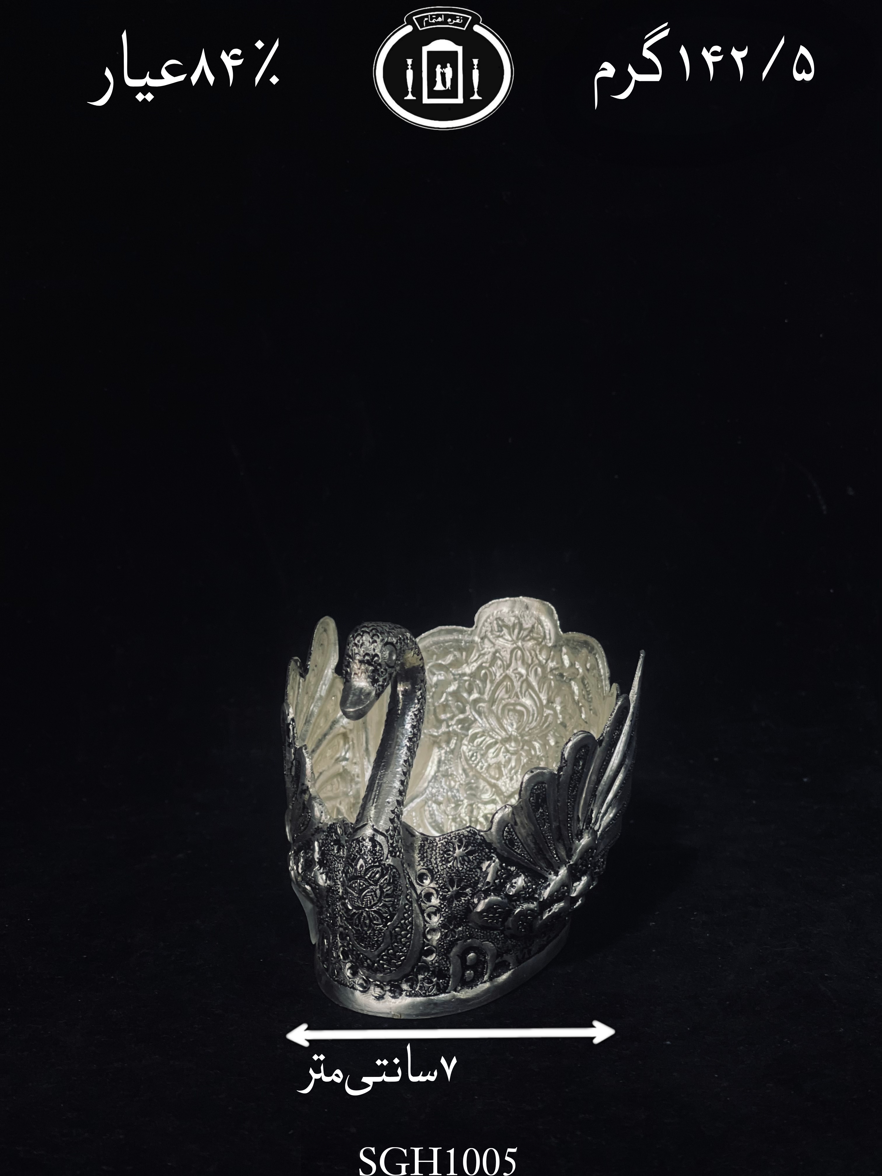 قو نقره قلم: گل و مرغ سیاه قلم ممتاز عیار : ۸۴ استاندارد ایران